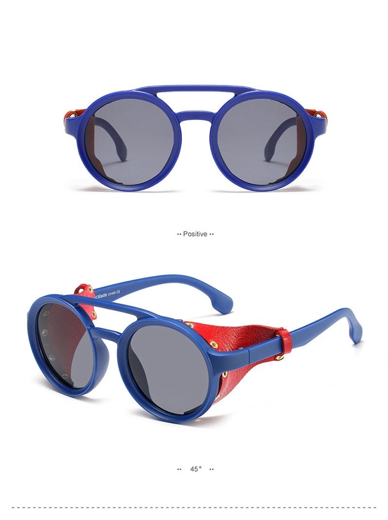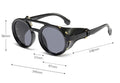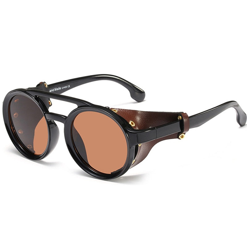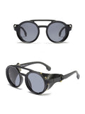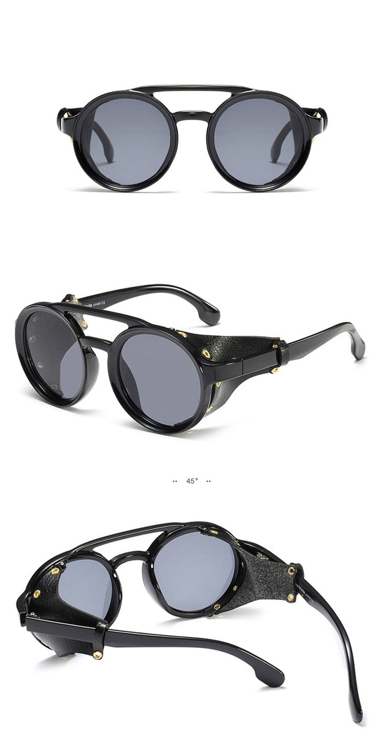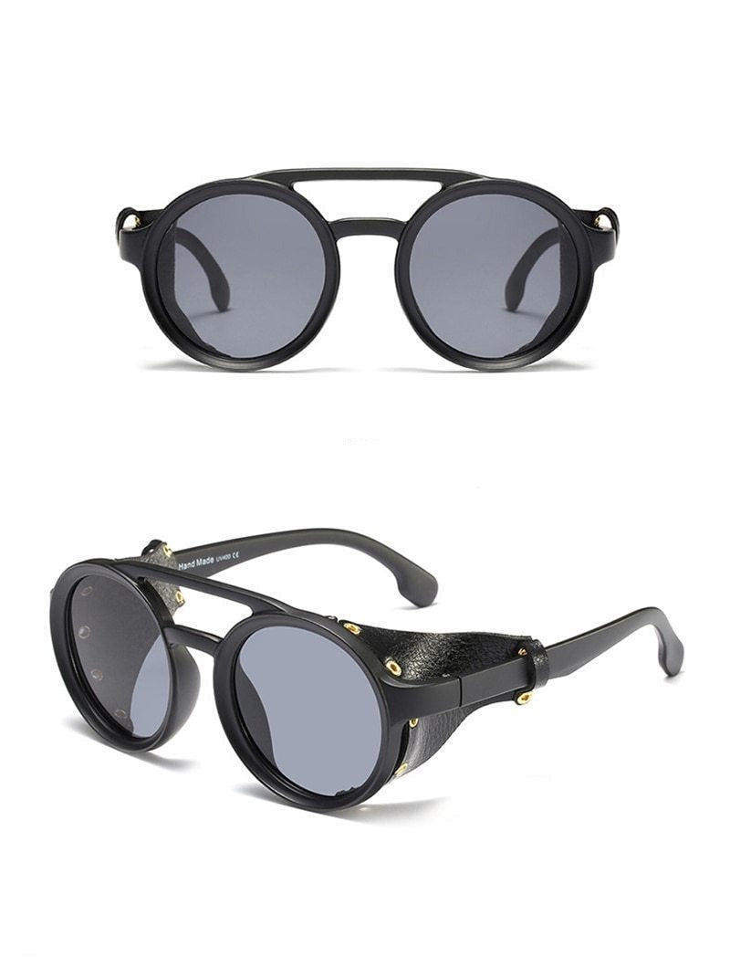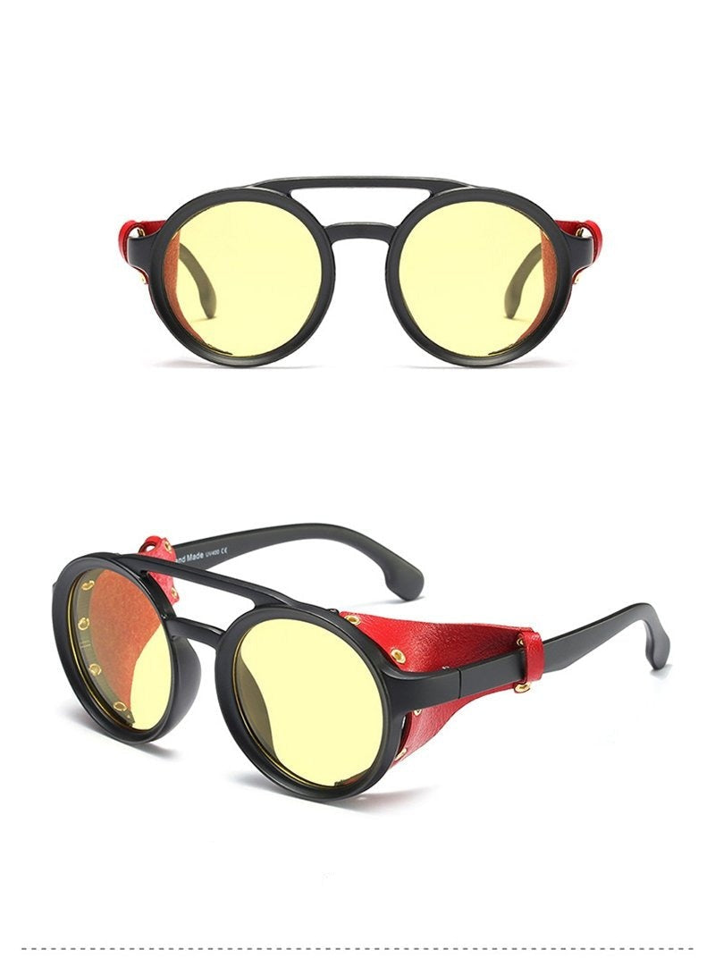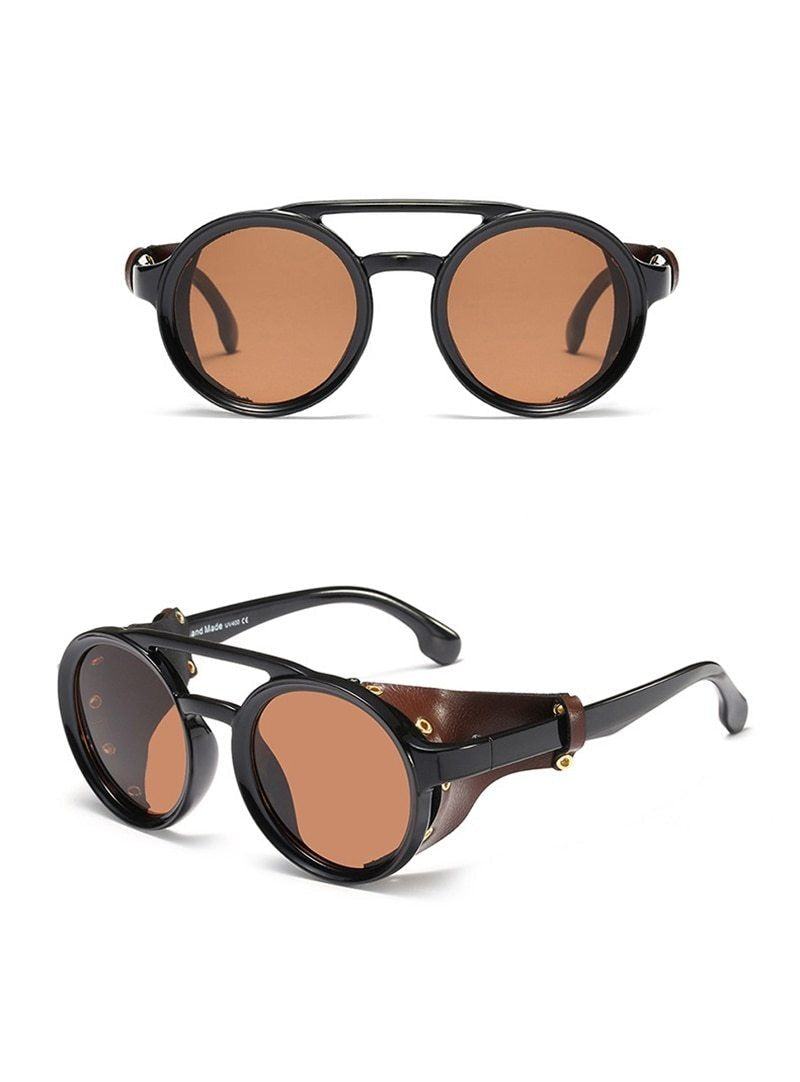 Order your Men's Round Steampunk 'Warboy' Plastic Sunglasses with Vegan Leather Side Shields today!